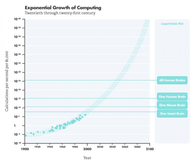 According to Kurzweil’s thesis on the growth of technology (the Law of Accelerating Returns),